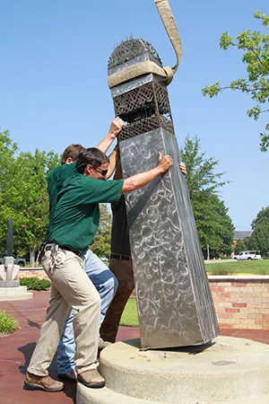 Pam, a painter, worked for the National Endowment for the Arts before moving south, and she called her new friend Nan Sanders, a fellow painter, to discuss the idea of developing a sculpture garden on the front lawn of the newly completed Bologna Performing Arts Center on the DSU campus.